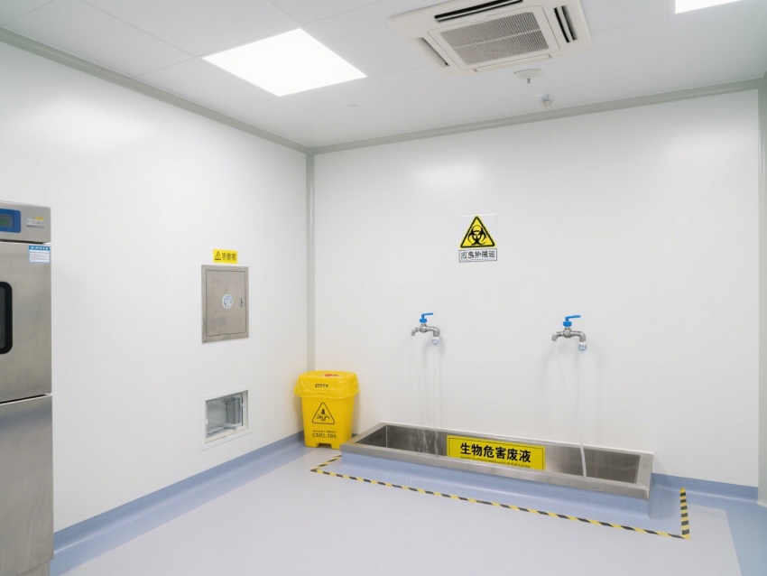內(nèi)部設(shè)施專業(yè)且完善,生物安全柜為實(shí)驗(yàn)操作提供無菌防護(hù);各類氣路、水路接口布局規(guī)范,滿足檢測(cè)過程的資源供應(yīng);配備應(yīng)急沖眼設(shè)施與生物危害廢液處理區(qū),保障實(shí)驗(yàn)安全??臻g設(shè)計(jì)注重潔凈與防護(hù),墻面、地面為無縫抗菌材質(zhì),便于消毒滅菌,黃色警示線清晰劃分功能區(qū)域,各類監(jiān)控儀表實(shí)時(shí)顯示溫濕度、壓差等關(guān)鍵參數(shù),確保實(shí)驗(yàn)環(huán)境穩(wěn)定可控。